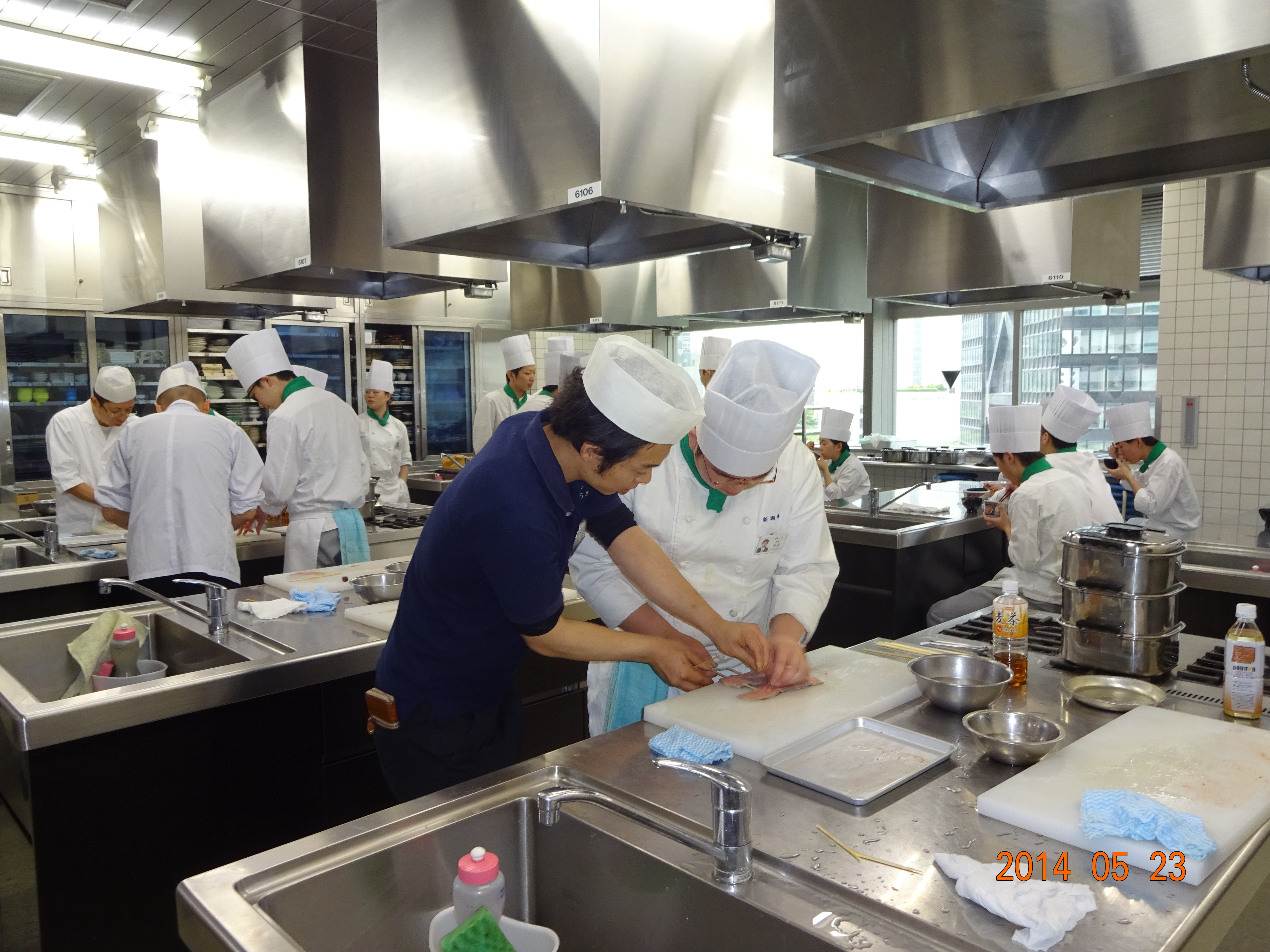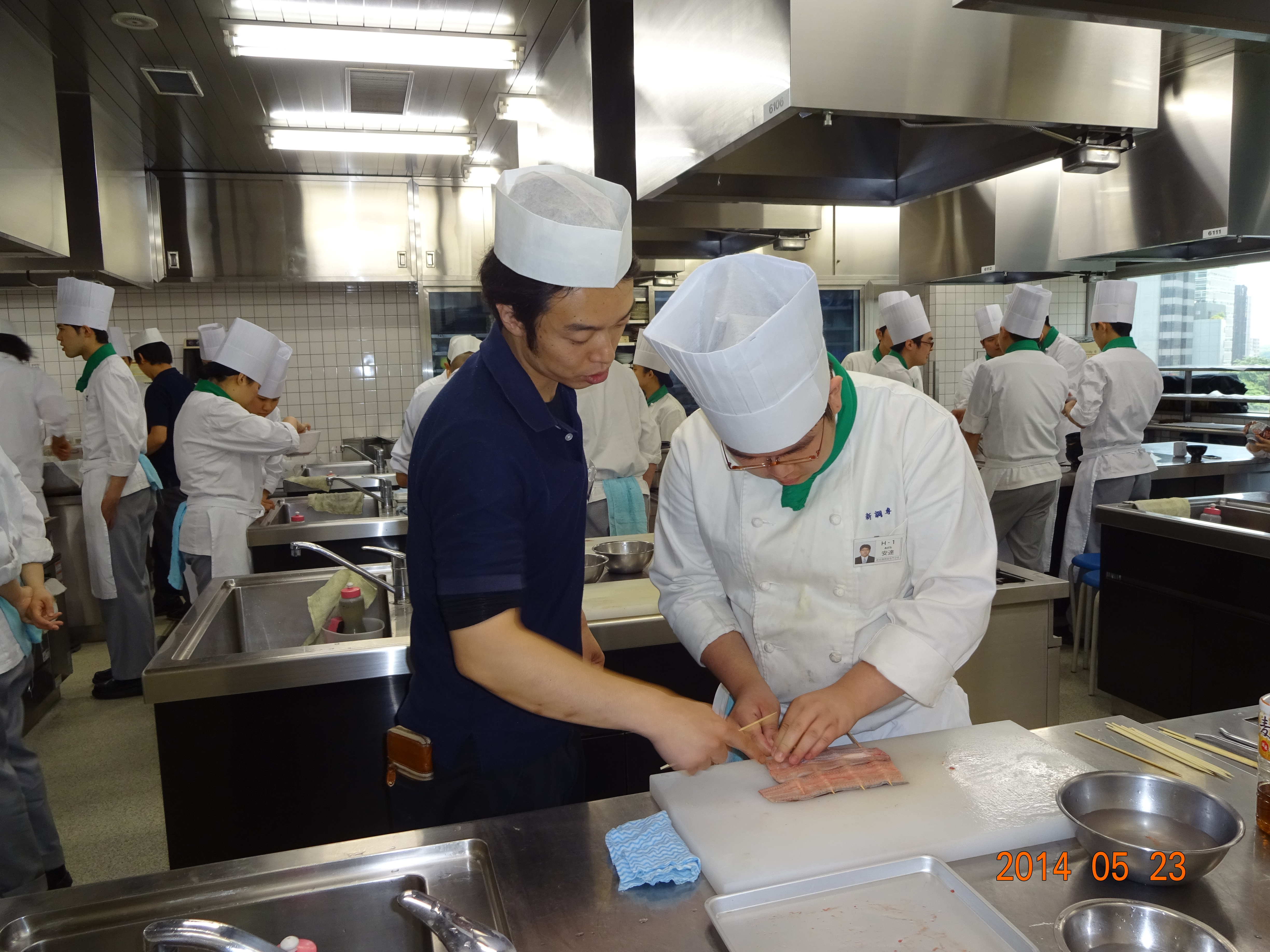 調理師専門学校へ講師の派遣をしました 2014/09/19 当店の料理人、菅原耕介が鰻職人として、 新宿調理師専門学校(新宿調理学園)様にて講習を行なってきました。 鰻の捌き方や、串の刺し方など、 学生たちへ鰻の職人技を伝授させていただきました。 日本の食文化である「鰻」をとおして、 調理師全体の技術の向上や、文化の理解が広く促進されることを願い、 浅草うな鐵が少しでもお役に立てればと考えています。